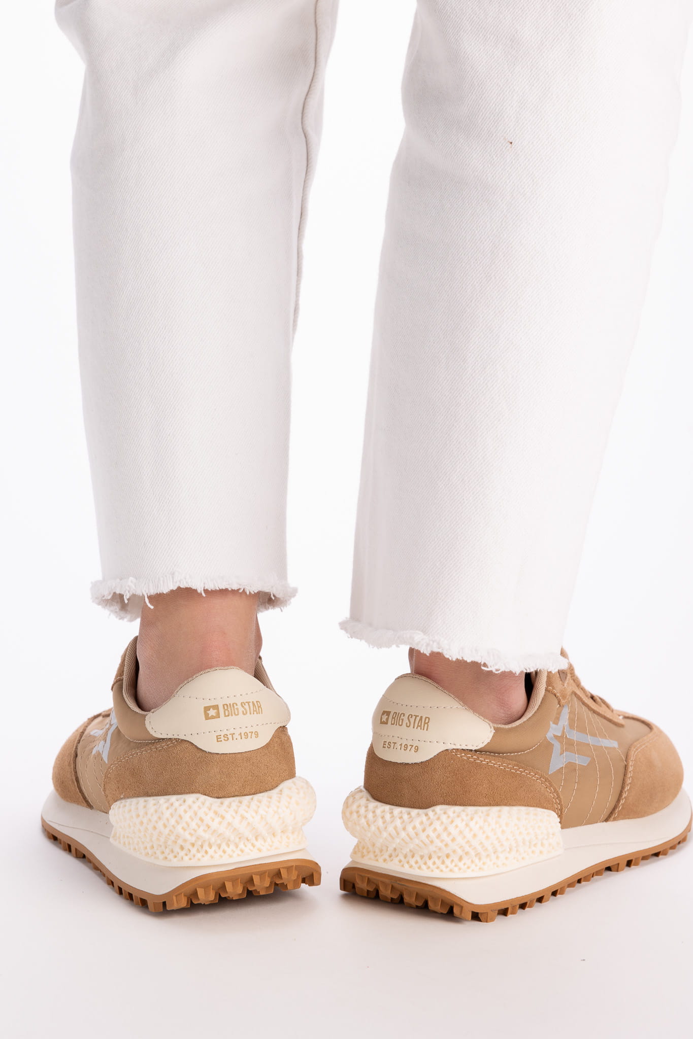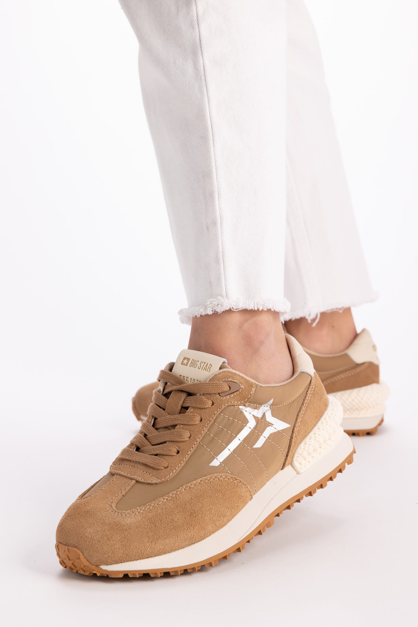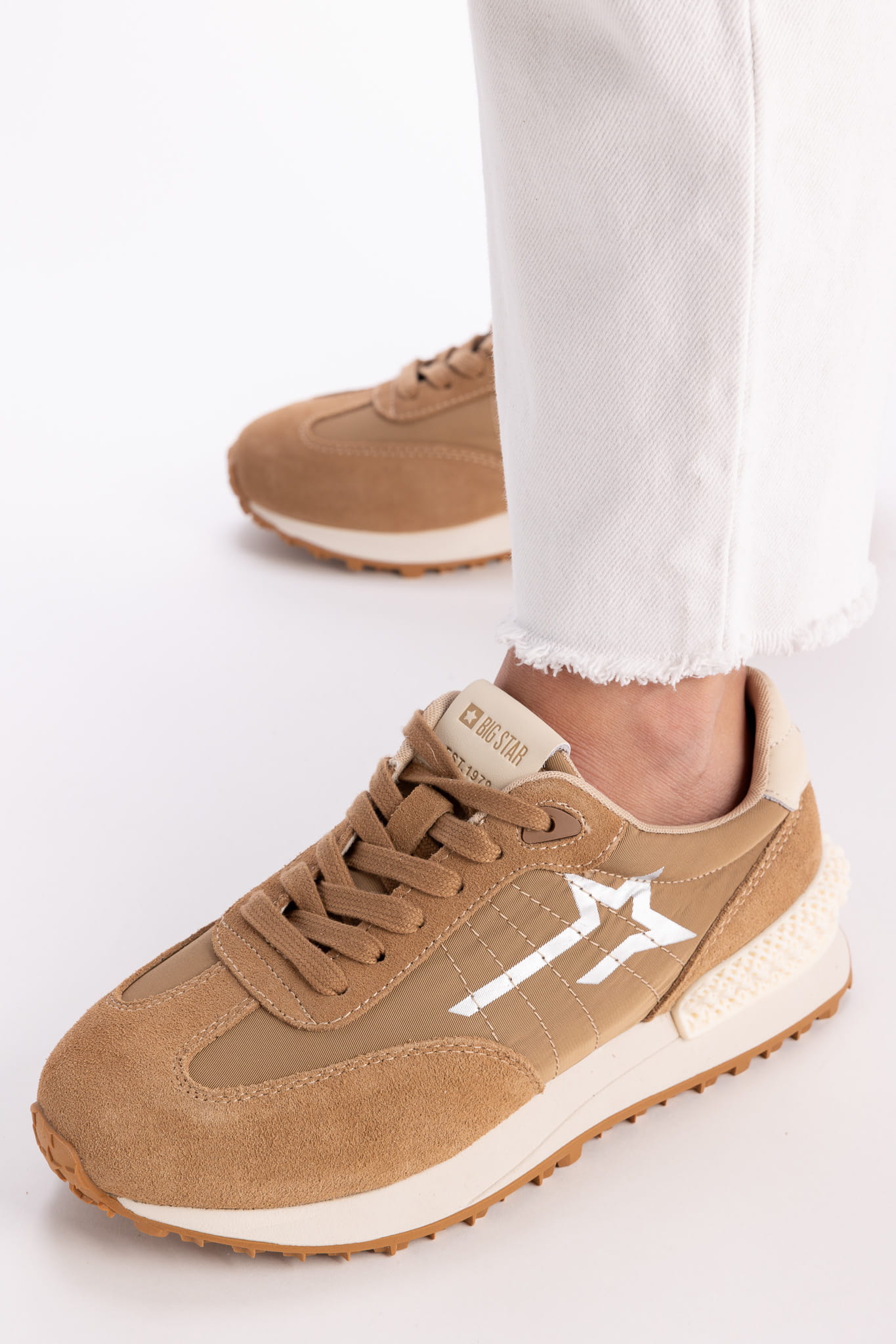 Sneakersy beżowe zamszowe Big Star to popularny model obuwia, który charakteryzuje się wykorzystaniem zamszu jako głównego materiału w produkcji. Zamsz nadaje butom elegancki, miękki wygląd, a także zapewnia wygodę noszenia. Big Star to marka znana z produkcji modnych i wygodnych butów i akcesorii ,a ich sneakersy zamszowe łączą styl z komfortem. Dzięki swojemu uniwersalnemu designowi nadają się zarówno do casualowych, jak i bardziej eleganckich stylizacji. Są one również stosunkowo łatwe w pielęgnacji, choć należy pamiętać, że zamsz jest bardziej podatny na zabrudzenia w porównaniu do skóry gładkiej.