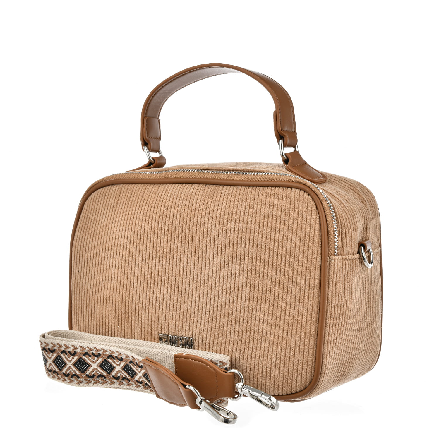 Beżowa torebka BIG STAR z dekoracyjnym paskiem to praktyczny i stylowy dodatek do Twojej garderoby. Model zamykany na zamek, zapewnia bezpieczeństwo Twoich rzeczy. Powyższy model to doskonały wybór dla wszystkich, którzy cenią wygodę, funkcjonalność i modny design.