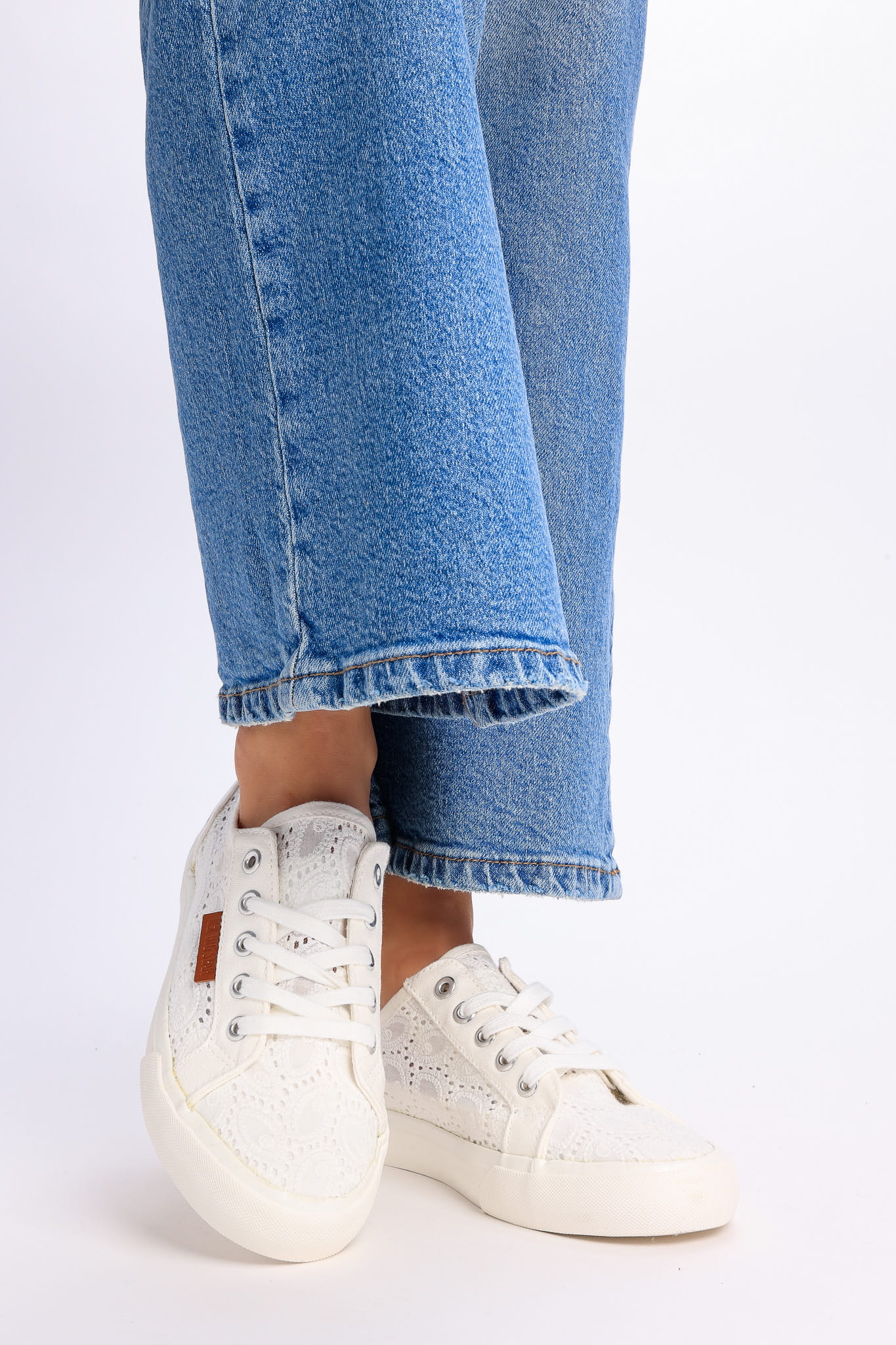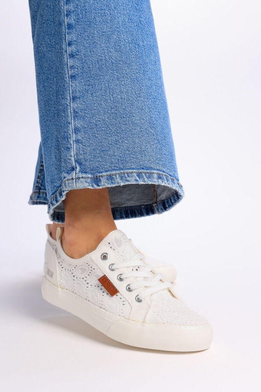 Nasz sklep oferuje szeroki wybór modnych trampkek. Model, który właśnie oglądasz, kojarzy się ze świeżymi, casualowymi stylizacjami. Niezbędną amortyzację stopy zapewnia płaska podeszwa z gumy. Od zewnątrz i wewnątrz but pokrywa materiał tekstylny.